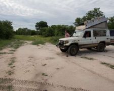 Einkauf und Tanken in Kasane, dann direkt vor den Gebäuden der Botswana Grenze auf die Hunters road abgebogen, um bei Pandamatenga nach Simbabwe einzureisen. Schon zu Beginn nicht einfach, dann große Wasserstellen, daher ab und zu auf der Simbabwe Seite der Grenze gefahren.