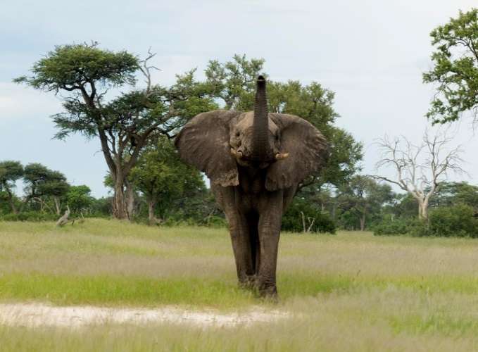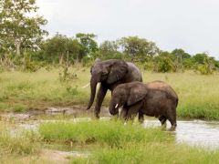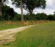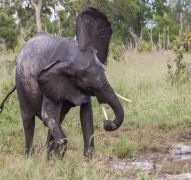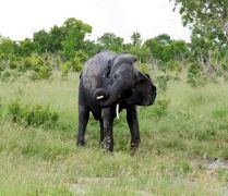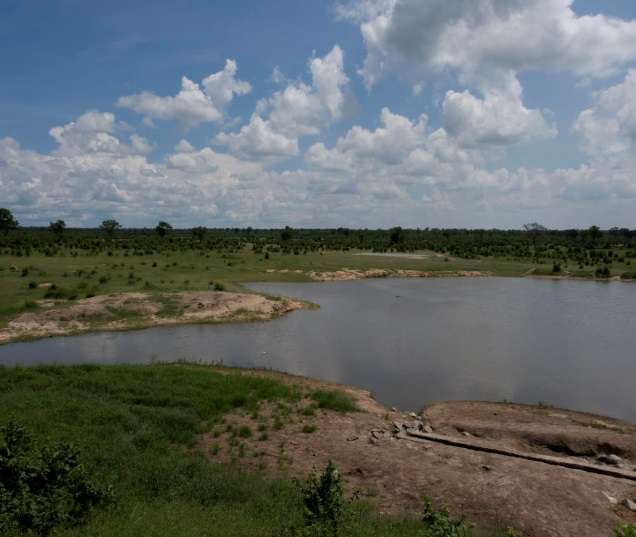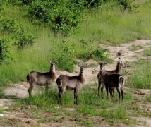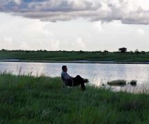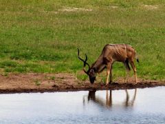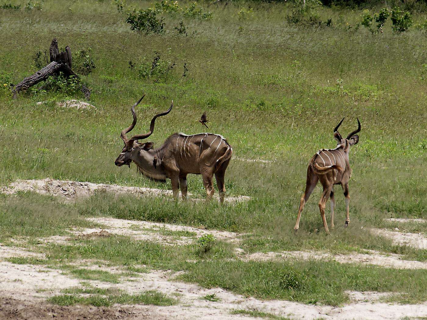 Wir fahren zum Mandavu dam unserem für die2.Nacht gebuchten camp. Nicht sehr schön, ein großer See mit vielen Anglern. Wir fahren erst mal weiter zum Shuma pan und neben einem toten Elefanten halten sich viele Störche (?) auf. Zurück zu Masuma dam, wir können dort bleiben, es kommt niemand mehr, trotz Vorbuchung. Mittags viele Vögel wie z.B. Glanzstare und am Abend Wasserböcke am Teich.