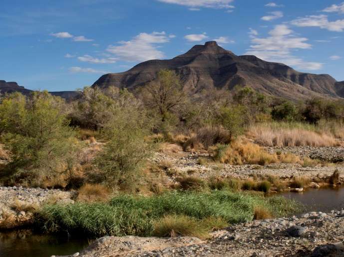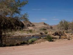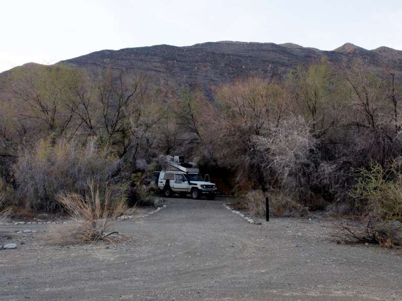 Dann nach Sesriem und an der „Rückseite“ der Dünen entlang bis zum Zebra/Tsauchab River auf einen sehr schönen Campplatz – Hauchabfontein (ab Sandberg Richtung Nord-Ost). Mittags eine längere Wanderung am wasserführenden Fluss entlang, auch hier hat es die Woche davor ordentlich geregnet.