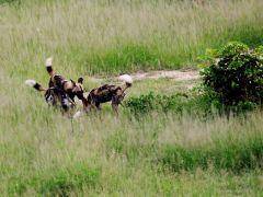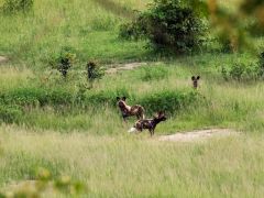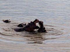 Erste Nacht in Masuma dam. An der Wasserstelle ist mittags nicht viel los, außer ein paar Hippos. Dann – painted dogs jagen ein Impala. Plötzlich sind ca. 15 der afrikanischen Wildhunde da und fressen die Gazelle. Nach unterschiedlichen Quellen gibt es nur noch 3000-7000 Stück dieser Spezies in Afrika. Ein tolles Erlebnis zum Ende des Tages.