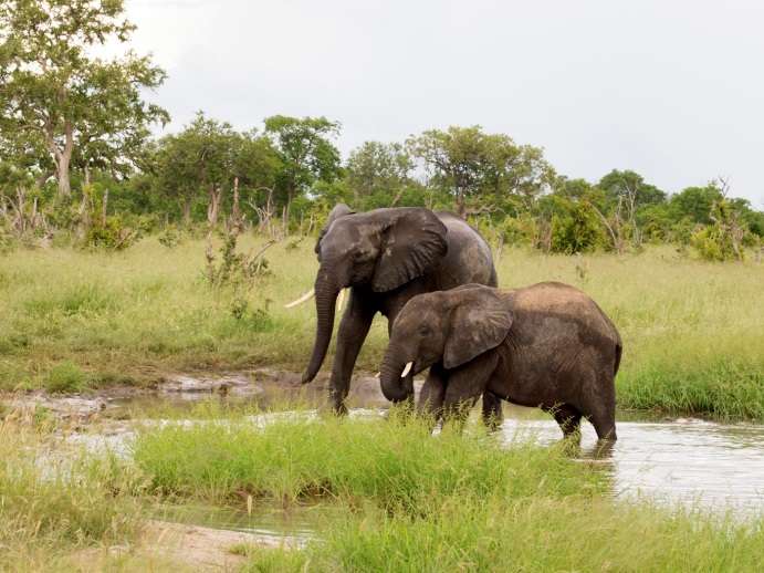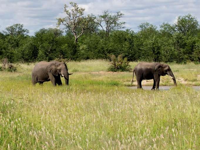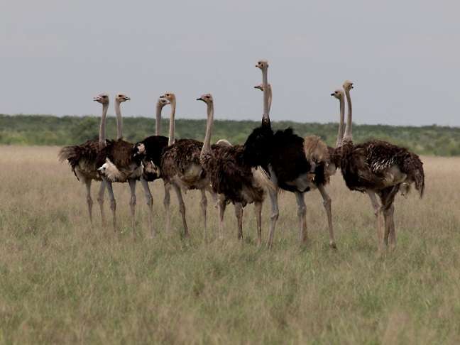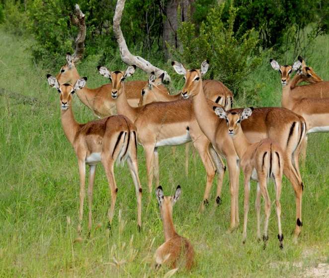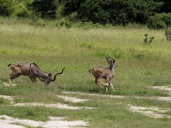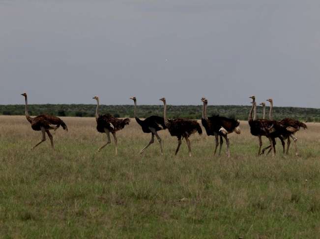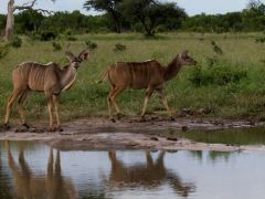 In Guvalala sitzen wir auf dem Hochstand und beobachten das Treiben am anderen Ufer der Wasserstelle. Ein einsamer Straus spielt sich mächtig gegenüber den Impalas auf, genauso wie der Kudubulle gegenüber seinen Weibern. Abends regnet es ein wenig.