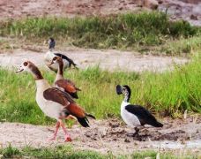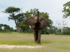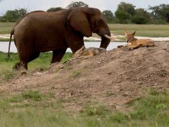 Wir buchen dann im main camp die letzte Nacht dort. Aber zuerst nach Kennedy 1. Als Camp schön, aber man sieht nicht über die Büsche hinaus ins Freie zum Wasserloch. Nachmittags fahren wir zur Ngweshla pan. Dort sind viele Tiere, Elefanten, Zebras, Antilopen, Affen und viele kleine und große Vögel, z.B. Höckerglanzgänse, alle nicht scheu. Schakale liegen hier faul herum.