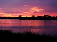 800km bis Divundu. Schöne Nunda Lodge in der Nähe der Popa Falls am Okawango. Schöner Sonnenuntergang.