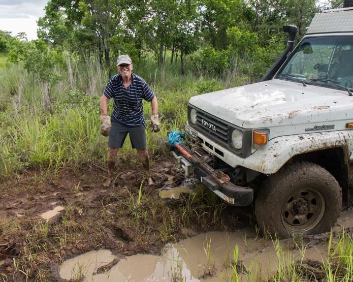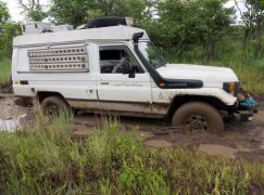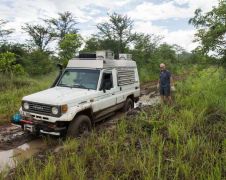 Dann dort in einem Wasser-Matschloch festgefahren. Nach drei Stunden Befreiungsversuchen incl. Winschen, freigekommen.