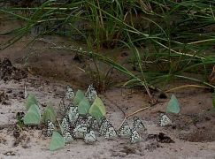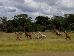 Wir müssen den Park verlassen und fahren nach Süden Richtung Xade. Die Giraffenherde hat sich auf 35 Tiere vergrößert. Auch Strausse und Ansammlungen von Schmetterlingen sind hier zu sehen. Pipers pan, es ist alles sehr weich. Die restlichen 80 km sind sehr schlecht zu befahren, eng, zerfahren und dazu noch ein zusammengebrochener Erdmännchen Bau in den wir hineinfahren.