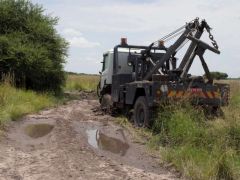 Wir fahren die 40km bis zur ersten Kreuzung und dann nach Norden zur Leopard Pan. Bei der Umrundung sehen wir viele Oryx Antilopen. Außerdem finden wir dort einen Turi-Nissan, und dahinter einen im Matsch stecken gebliebenen Abschleppwagen.