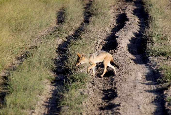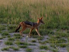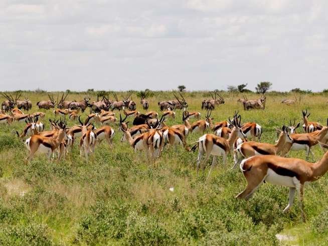Abends nochmals zur eigentlichen Pan, um dort große Herden Oryx und Impalas, aber auch Schakale und Löffelhunde zu sehen, die einzigen Tiere die hier scheu sind.