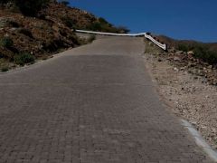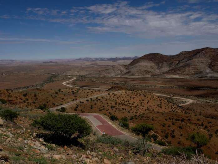 Weiter durch Wüstenlandschaft bis zum Spreetshoogte Pass der ziemlich einmalig ist. Auf Grund der Steilheit ist er mit Betonknochen Pflaster belegt. Oben tolle Aussicht.