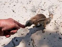 Bei der Weiterfahrt zur Sunday pan wieder viele Oryx. Beim Mittagessen versucht ein Erdhörnchen, auch etwas Futter zu bekommen, beißt es mich sogar in den Finger.