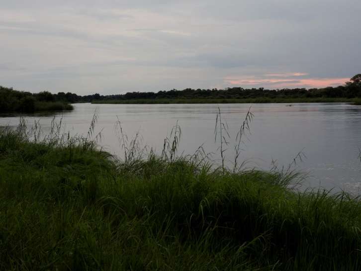 Masuma dam – 9.30 - 25° C, bedeckter Himmel und vor uns im Teich Hippos und Krokodile.
