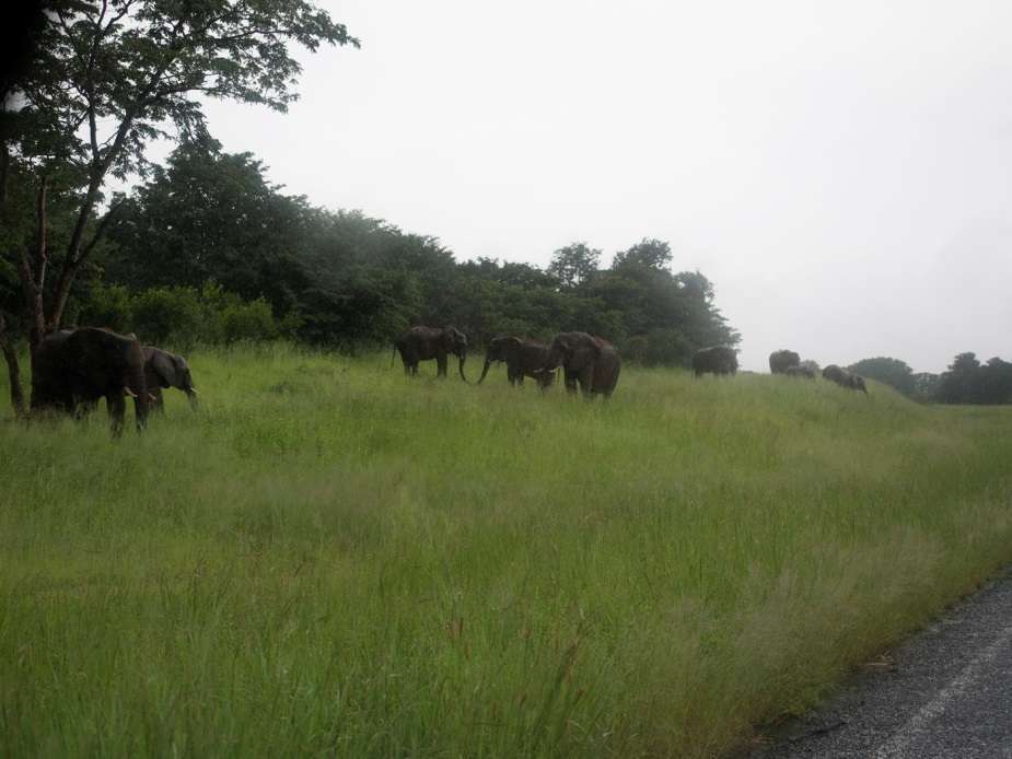 Zurück auf der Hunters road nach Kasane und auf der Asphaltstraße mit zeitweise Elefantenbegleitung direkt an der Straße nach Süden nach Pandamatenga.