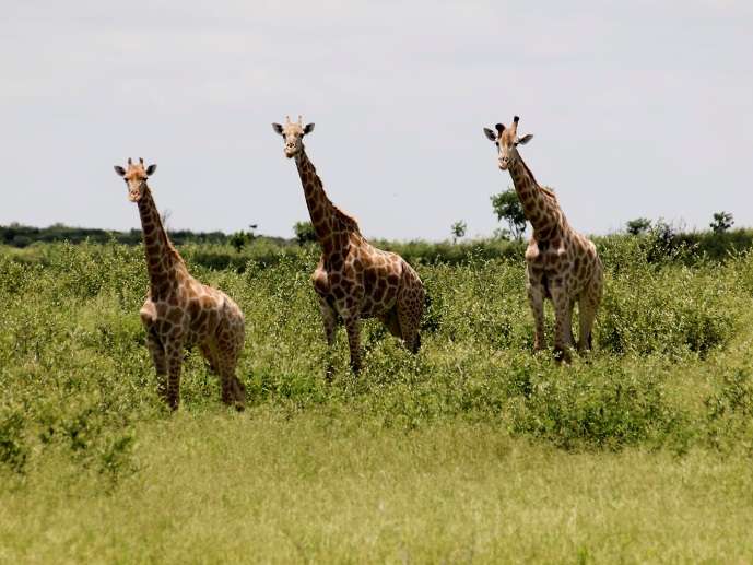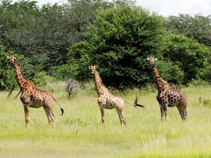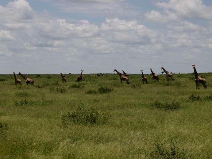 Fahrt nach Guvalala, unterwegs halten wir an der Makwa pan und sehen viele Giraffen.