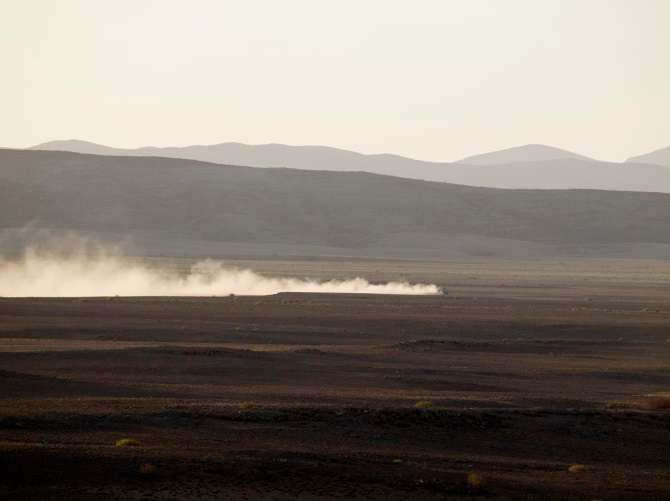 Wir sehen am nächsten Morgen was dieses Autoungetüm mit den 100km Piste nach Ghanzi macht - tiefe Spurrinnen.
