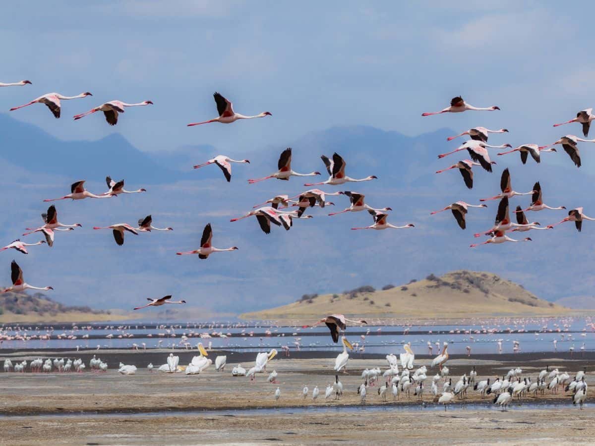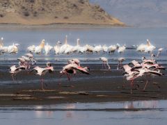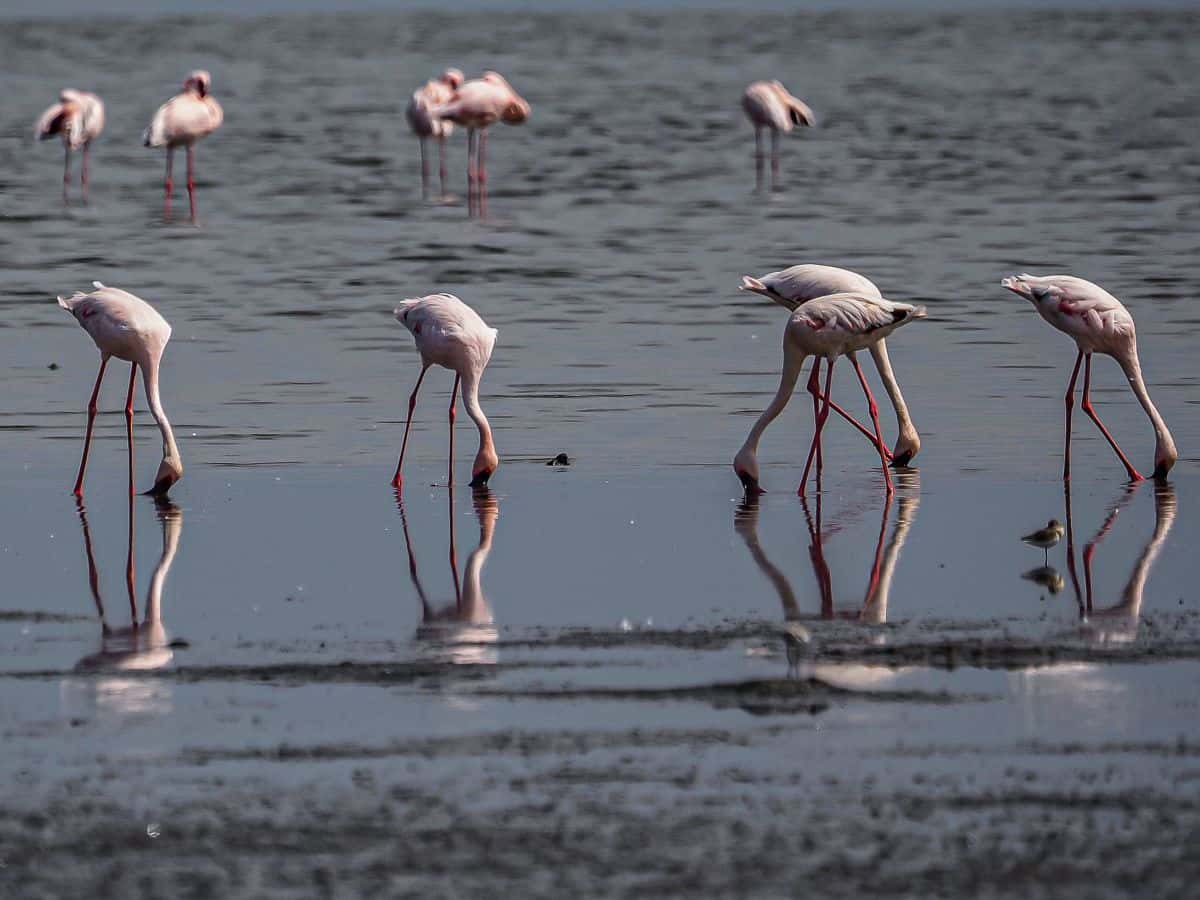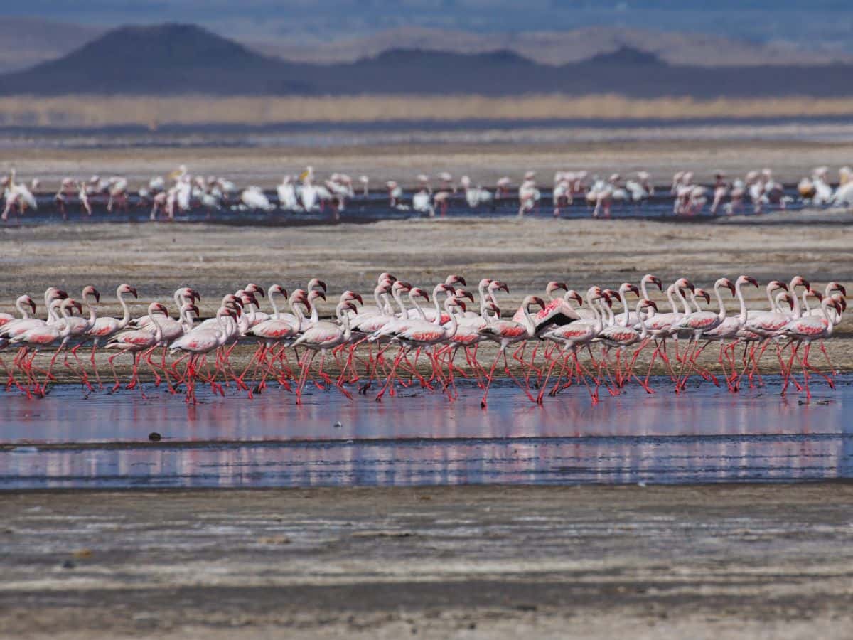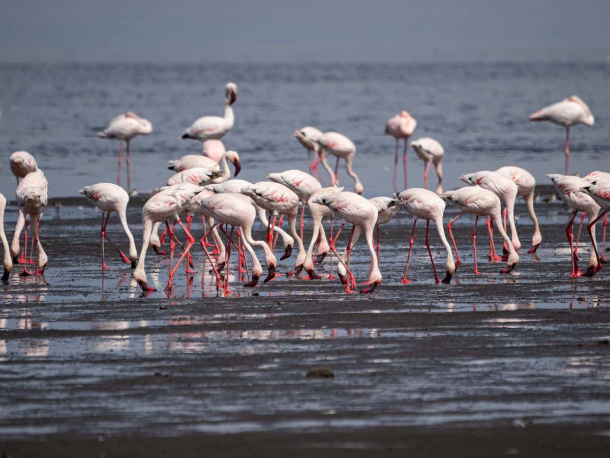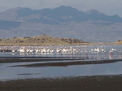 Toll: unzählige Flamingos, Pelikane und kleinere Vögel bunt gemischt haben sich hier versammelt. Wir sind fast drei Stunden am Seeufer.