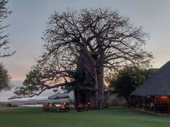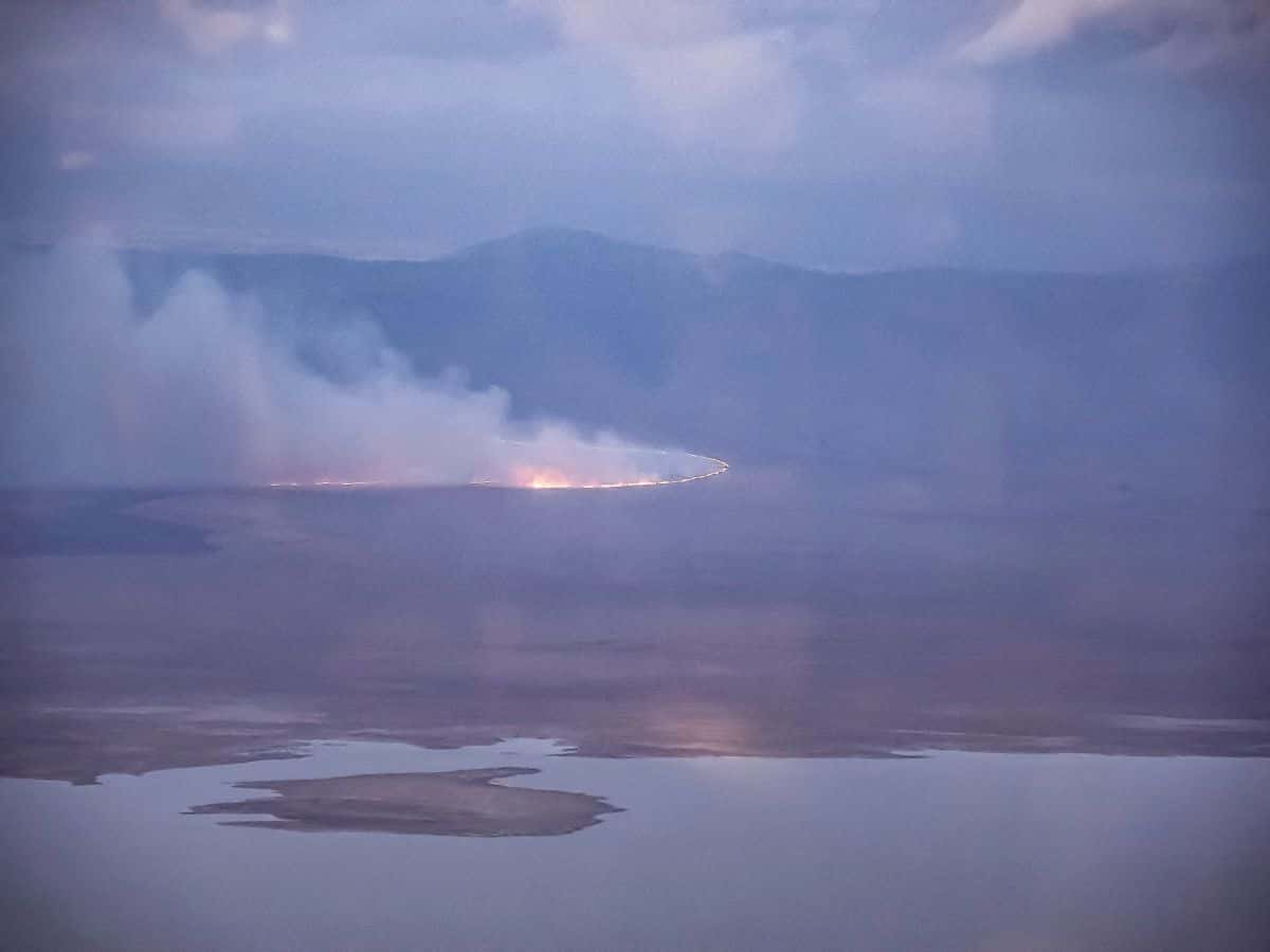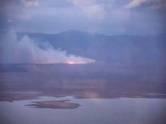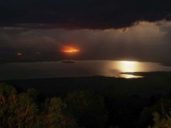 Abendessen in der „Ngorogoro Serena Safari Lodge“, später dann eine tolle Mondbeleuchtung des Sees mit den Feuern.