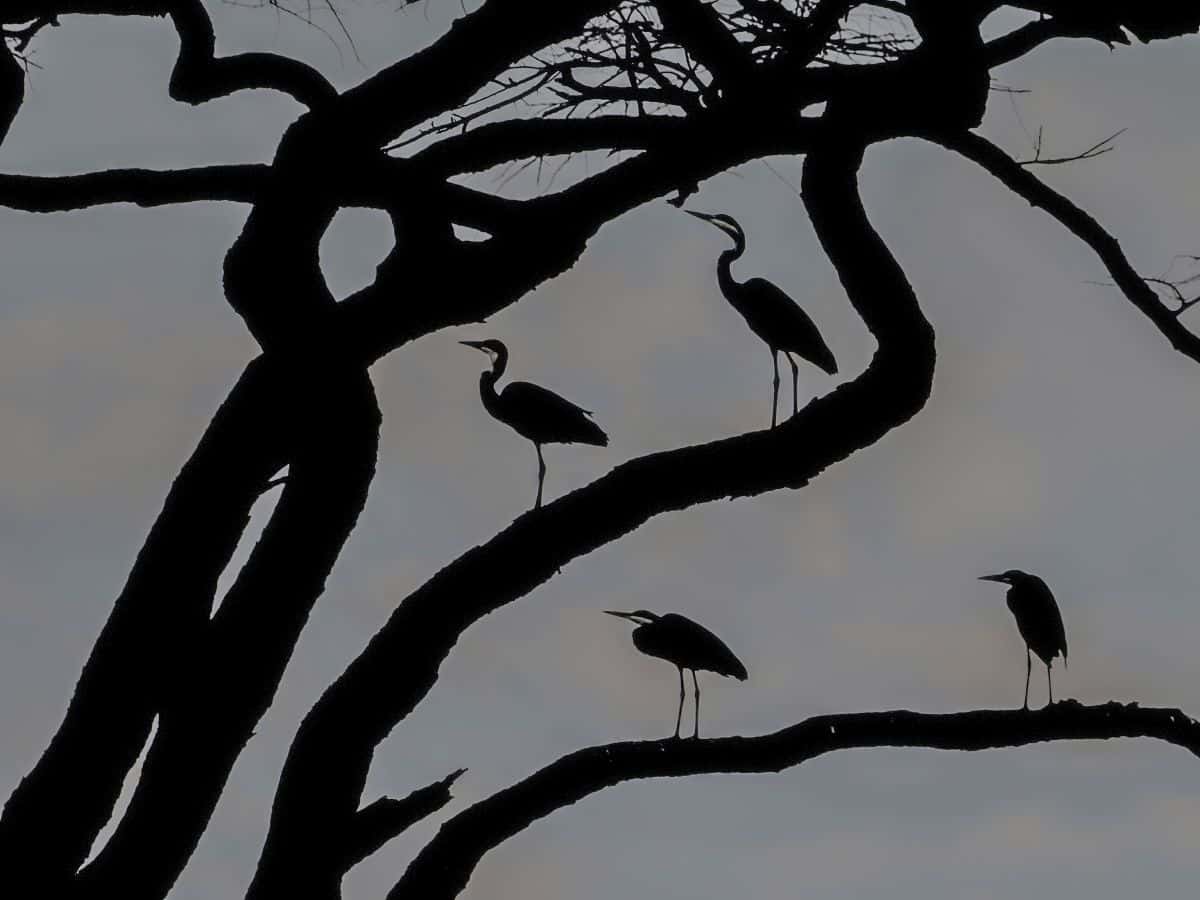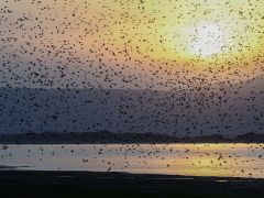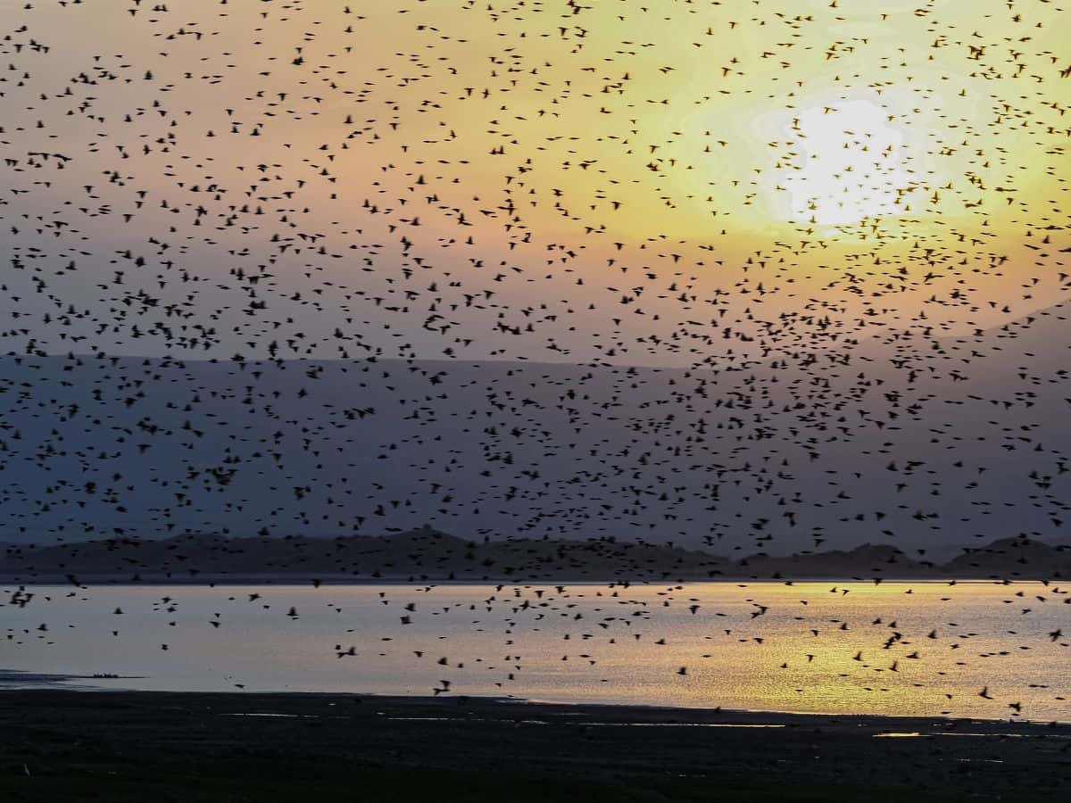 Durch einen schönen Sonnenuntergang mit Vogelschwärmen werden wir etwas entschädigt.