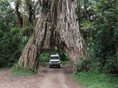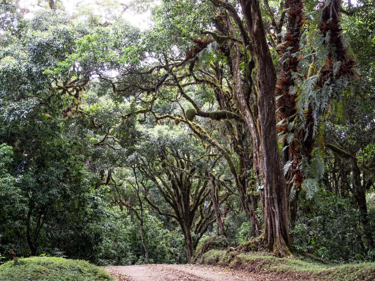 Zum Arusha Nationalpark gefahren. Durch tollen Hochgebirgs-Urwald zum „Mt. Meru“ (4560 m hoch) bis zum Ende der Piste auf 2500m hochgefahren.