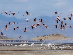 Wir finden einen tollen Lagerplatz am Ostufer des Sees, wo uns dann die jugendlichen Schaf- und Ziegenhüter besuchen, wobei es keinerlei betteln oder anmachen gibt. Der See war wohl vor einiger Zeit voller als jetzt, sodass es jetzt eine breite schlammige Uferzone gibt. So sehen wir die Flamingos nur aus der Ferne, da wir nicht nahe genug an den See kommen.