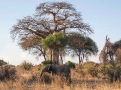 Zum „Tarangire N.P.“ gefahren: sehr viele Tiere wie z.B. Elefanten, und viele Baobabs.