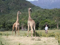 Am Morgen besuchen wir Giraffen auf einer Wiese. Olaf kann es nicht lassen, an diese doch etwas größeren Tiere nahe heranzugehen.