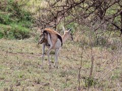 Vielleicht ein seltener Anblick, eine Antilope die gerade ihr Junges während des Laufens herauspresst.