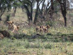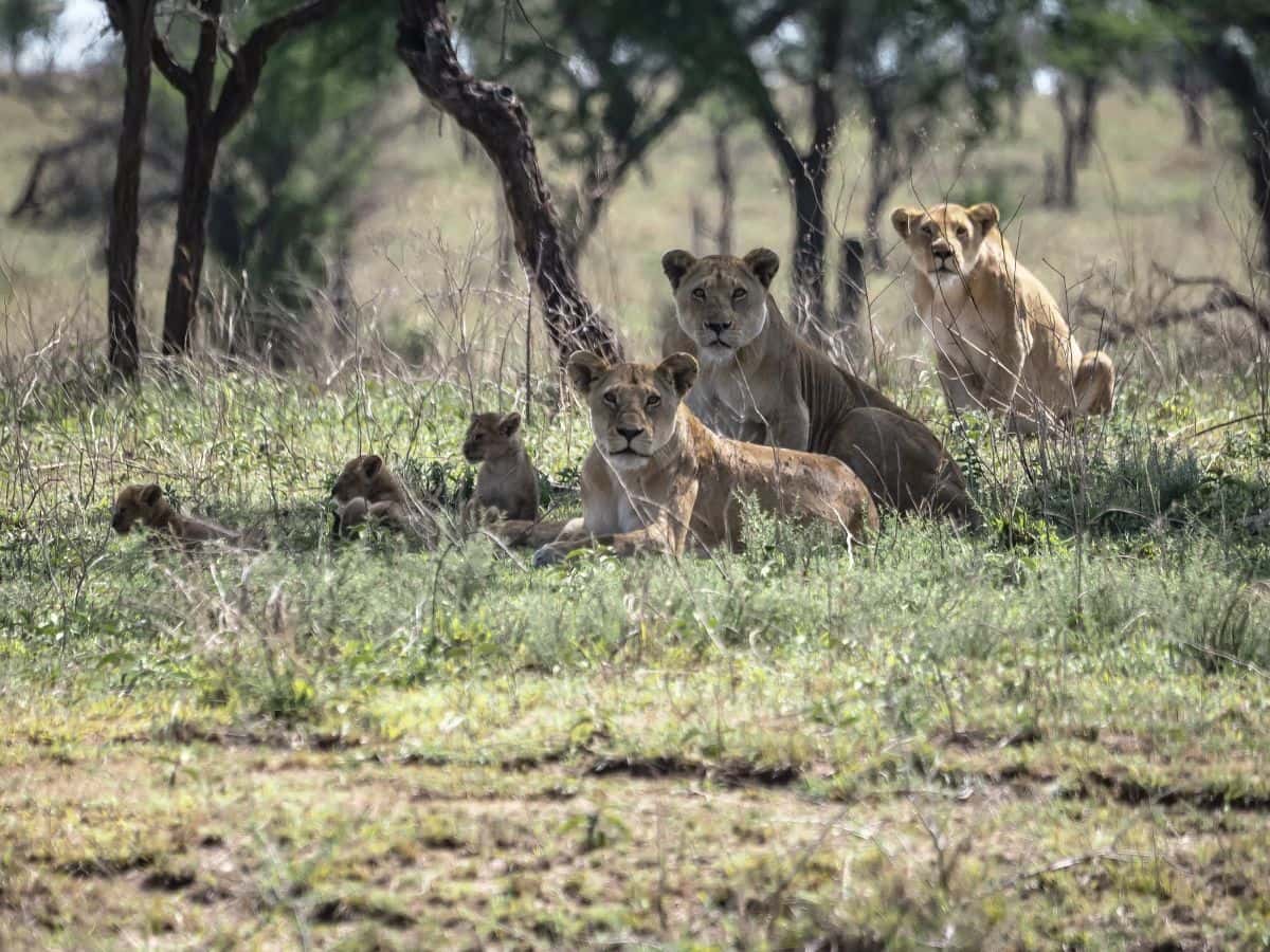Morgens entdecken wir drei Löwinnen mit Jungen.