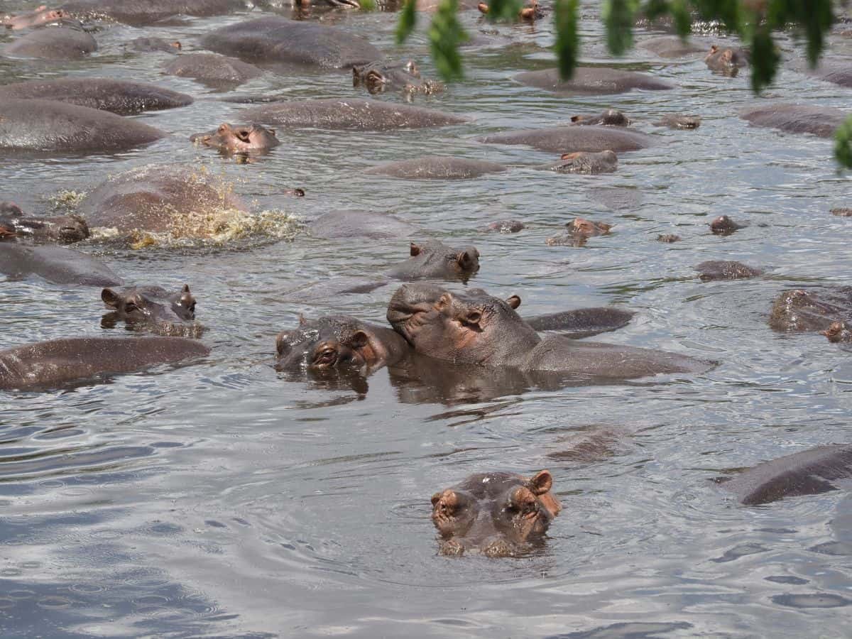 ... und besuchen den „Hippo Pool“: Ein großer Tümpel mit sehr vielen Hippos. Ich habe noch nie so viele auf einmal gesehen.