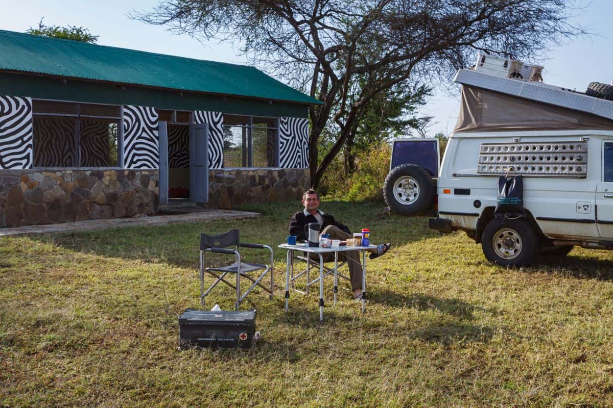Der Campplatz ist eine Wiese auf der Zebras grasen mit leidlichen Sanitäranlagen.