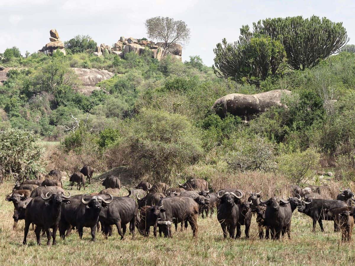 Am Morgen Weiterfahrt zu den „Massai copies“. Copies sind wie Inseln im Meer verstreute Ansammlungen von großen Felsbrocken.