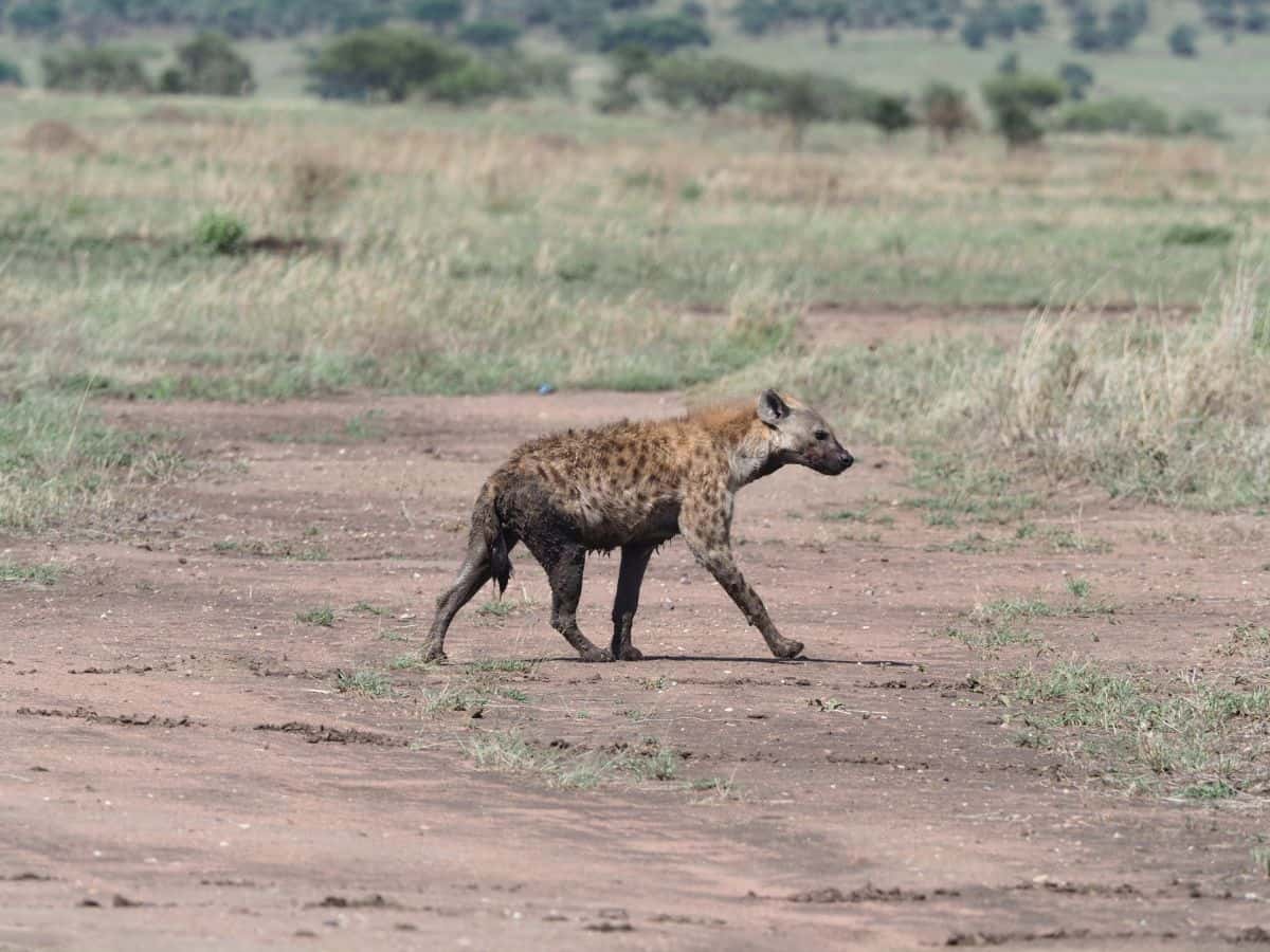 Auch Hyänen laufen fast zutraulich neben dem Auto her. Wahrscheinlich wundern sich alle Tiere, dass so wenig Autoverkehr ist.