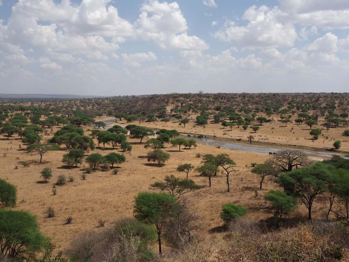 Mittags auf der Terrasse der „Safari Lodge“ Kaffee getrunken mit Blick auf den Tarangire River.