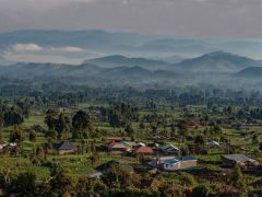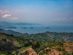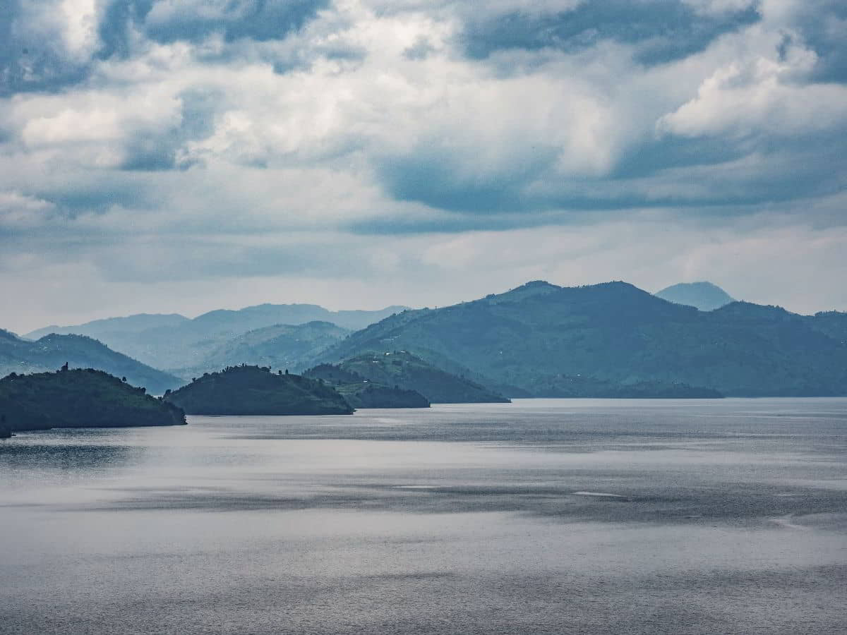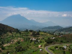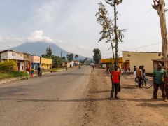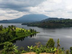Weiterfahrt Richtung Grenze. Ein Stück weit fahren wir am Nordufer des Lake Burera entlang mit toller Panoramasicht auf die gestaffelten Berge und den 4100 Meter hohen Vulcano Muhavura. Das ist unser Zwischenziel, um die Gorillas zu sehen.