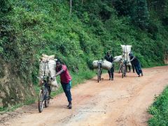Am See entlang wird bis zu den Bergspitzen auf Terrassen Landwirtschaft betrieben. Uns fällt auf, dass neben den Frauen hier auch Männer in der Landwirtschaft arbeiten.