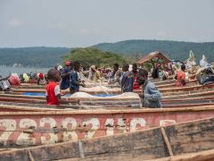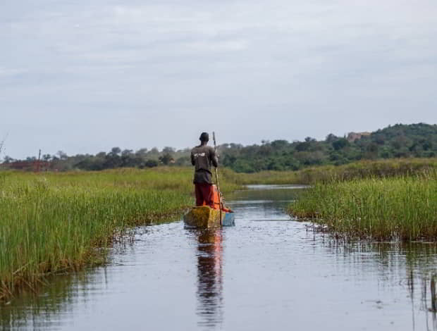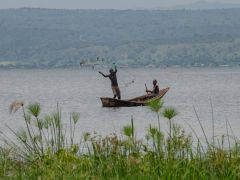 Die Strecke nach Katungura am Fluss zwischen Lake George und Lake Edward durch den Queen Elizabeth Park unterbrechen wir mit einem Abstecher zum Lake Edward bei Kiseny. Übernachtung auf einem Campplatz am südlichen Ufer des Flusses.