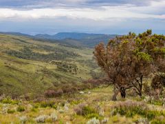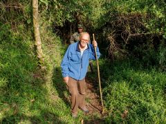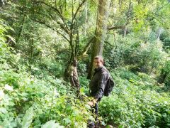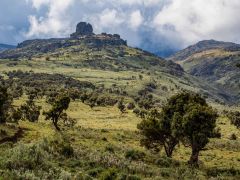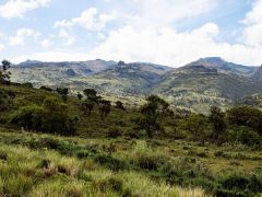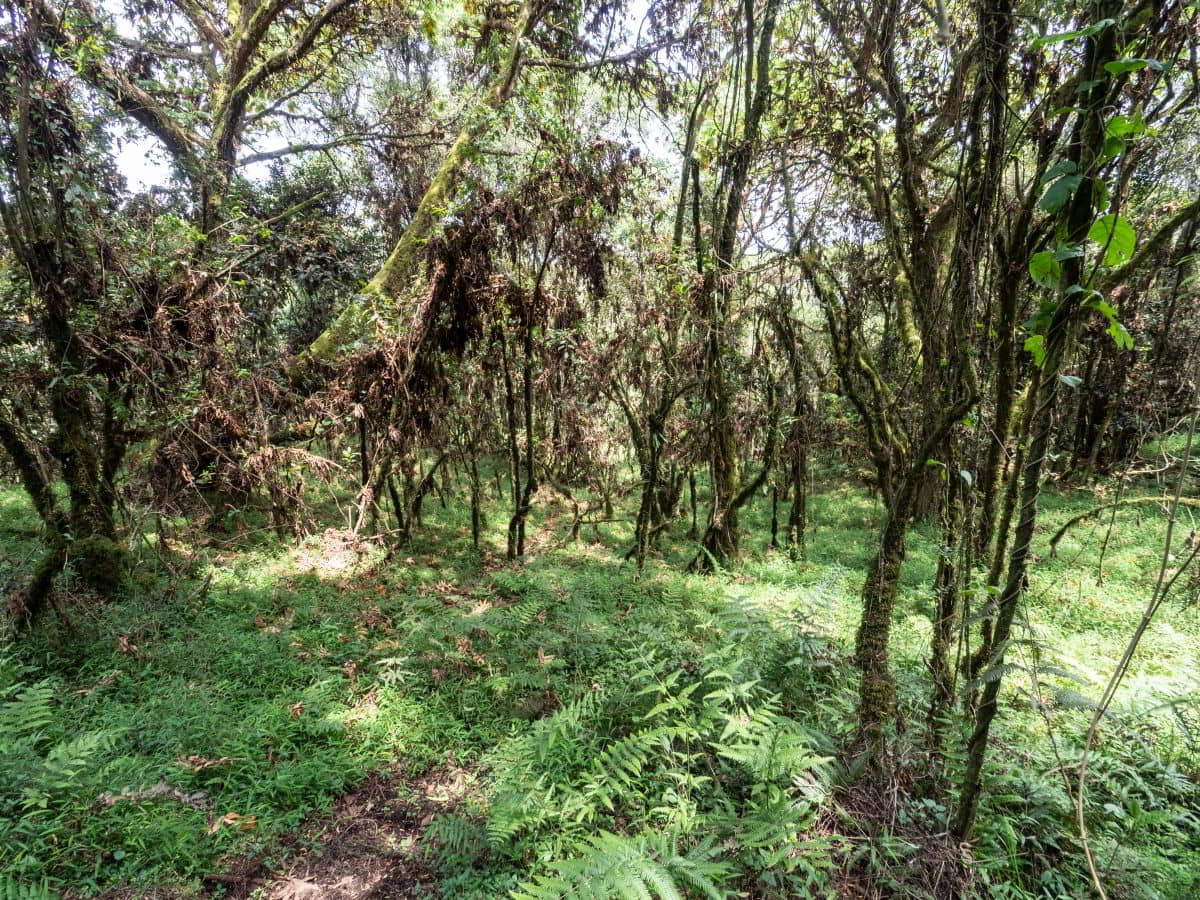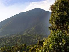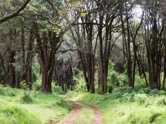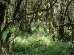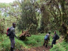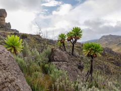 Dann von Kitale aus in Richtung Berge in den Mount Elgon Nationalpark. Von 2100 Metern geht es dann hoch - teilweise durch Urwald - bis zum Straßenende auf 3475 Metern. Dort steht eine Nothütte aus Blech mit Fugen dazwischen. Plötzlich kommt dicker Nebel auf, der sich aber nach einer Stunde wieder auflöst. Danach gehen wir den Berg an. Ich nur bis ca. 3550 Meter Höhe, Olaf bis zu einer Felsspitze bei ca. 3650 Metern. Hier sieht er die Riesenlobelien. Nach kargem Abendessen legen wir uns früh schlafen bei 5-6 Grad Wärme/Kälte - je nach dem, wie man das nennen will.