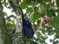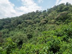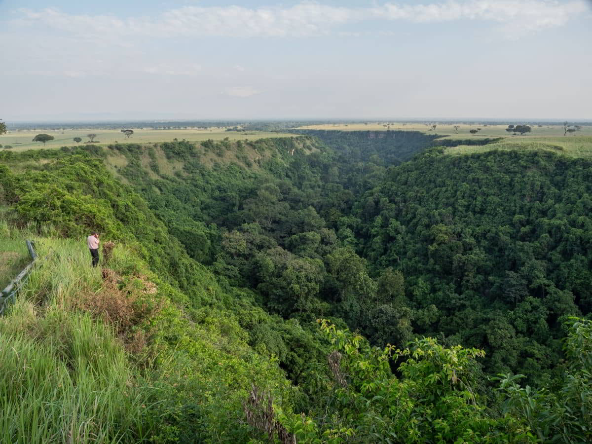Die Kyambura Gorge ist ein 16 Kilometer langer und 100 Meter tiefer Einschnitt in die Ebene. Es herrscht unten ein eigenes Klima mit 32-35 Grad und ca. 90% Luftfeuchtigkeit. Dichter Urwald und wir sehen sogar einige der hier lebenden Schimpansen. Ein sehr empfehlenswerter Abstecher.