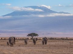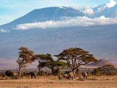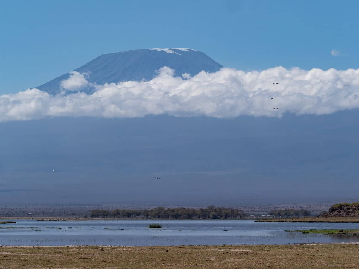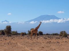 Und immer steht der Mount Kilimanjaro, dieses Jahr mit sehr wenig Schneefeldern, als Fotohintergrund zur Verfügung.