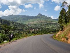 Ab Kigali wird es dann mit dem Verkehr in Richtung West irrwitzig. Von 1400 Metern hinauf auf 1800 Meter und wieder hinab auf 1000 Meter. Ein Schwerlast-LKW am anderen. Überholen ist sinnlos.