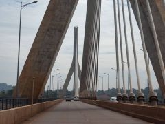 Über die große Brücke zum Ursprung des Blauen Nil. Es ist der weiterführende Ausfluss aus dem Victoria See mit der größten Wassermenge.
