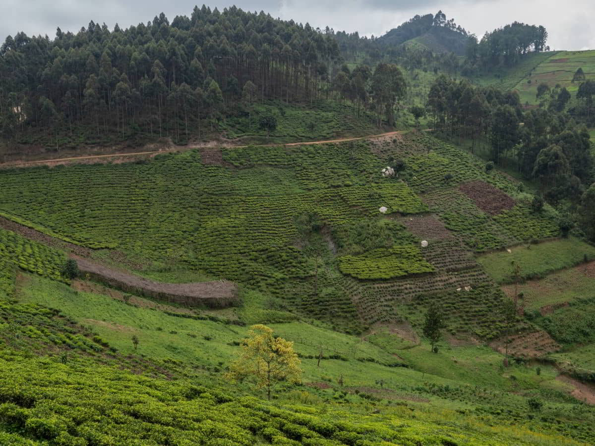 Und weiter geht es mit sehr viel Verkehr bis kurz vor die Grenze nach Ruanda. Übernachtung oberhalb eines Tales in bewirtschaftetem Gebiet. Am nächsten Morgen werden wir von Arbeitern freundlich begrüßt.