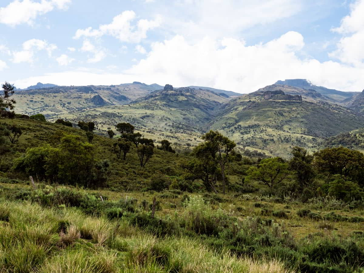 Acht Uhr Abmarsch Richtung Volcano Muhavura mit wunderbarem Blick auf die Landschaft im Tal