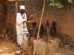 Um 10.00 Uhr Abfahrt zu einem Voodoo Priester in dessen Haus mit unserem guide. Beeindruckende Vorführungen an den verschiedenen Fetisch Altären. Der Sinn erschließt sich uns nicht, es sollen z.B. auch „Unsichtbarkeits Rituale“ dabei sein.