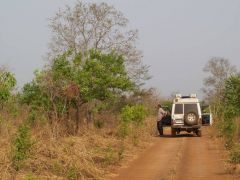 Abzweig nördlich von Parakou zwischen Ndali und Bémbéréké in Richtung Westen auf eine Piste. Dann ab in den lichten Laubwald als Lagerplatz.
