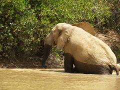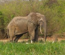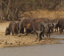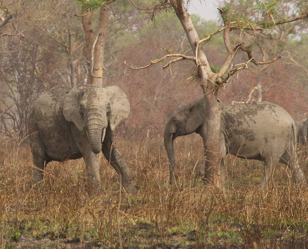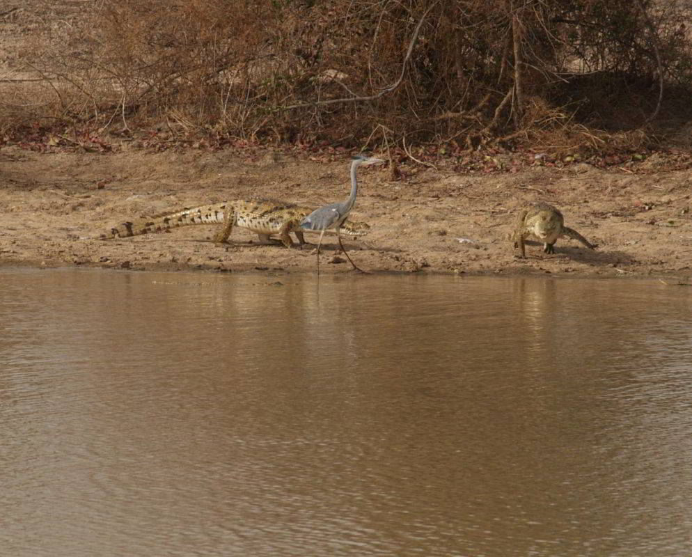 Weiterfahrt nach Osten an weiteren "maren" entlang. Zu Fuß verfolgen wir im Abstand von ca. 20m einen einzelnen Elefanten, der dann über den Pendjari nach Burkina Faso die Grenze wechselt. Ganz schön aufregend, aber er hat sich noch nicht mal nach uns umgedreht. Dan zurück zum "Mare Bali" in der Parkmitte. Mehrere Stunden verfolgen wir von einem Hochstand aus das lebhafte Treiben in und um das Wasser herum. Ausser den Grosskatzen und Giraffen haben wir eigentlich alle Tiere die hier vorkommen, gesehen.