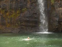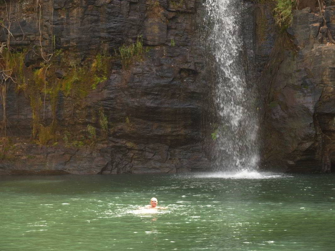 Schöner Wasserfall mit Bademöglichkeit, welche wir bei den herrschenden Temperaturen von über 40°C auch nutzen.