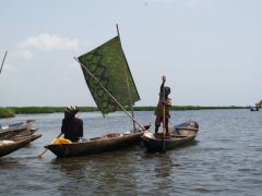 Wir besuchen Ganvie, eine Stadt auf Pfählen, nur auf Wasserstrassen mit Piroge per Segel und Padel erreichbar. Sehr schönes lohnenswertes Erlebnis obwohl touristisch angehaucht. Es fällt schon hier auf, es gibt einige Touristen in Benin, im Gegensatz zu Togo. Erstaunlich ist das Nebeneinander von Frauen in traditioneller Bekleidung neben Frauen in Minis, bei immerhin einem moslemischen Viertel der Bevölkerung. Aber auch Voodoo ist allgegenwärtig, z.B. als Fetischaltar auf einem Parkplatz direkt an der Strasse.