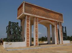 In einem Dorf bei Ouidah machen wir einen Fotostop - dann suchen wir den heiligen Wald in Ouidah. Erst mit einem Einheimischen der versteht wohin wir wollen, finden wir ihn. (N 6°21.913/ O 2°05.776) In diesem Wald wurde der verfolgte König zum Baum um in dieser Form weiter zu leben und entkam so seinen Verfolgern - Voodoo.