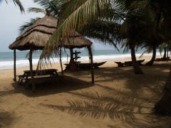 Versicherung, Geldtausch (655 CFA = 1 Euro), Einkauf - gegen 12 Uhr Abfahrt in Richtung Benin. Grenze ist chaotisch, trotzdem geht es für uns ganz einfach und schnell. Übernachtung bei der Auberge "Gran Popo". (Stellplatz 4000 CFA) Die Anlage ist schön, das Essen im Restaurant eine Zumutung. Uhren werden wieder um 1 Stunde vorgestellt.