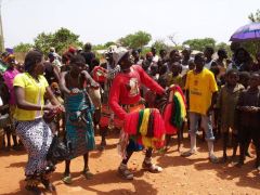 Über Pehonko und Kouande fahren wir in Richtung Natintingou. Unterwegs fotografieren wir Frauen auf der Piste, ohne jegliche Probleme, sie stellen sich richtig in Pose. Toll ist dann auch eine Gruppe von Straßenmusikanten mit Tänzerinnen in einem Dorf. Durch Blicke und zeigen auf die Fotoapparate können wir auch hier fotografieren. Offensichtlich hat man hier in Benin als Tourist keine Probleme mit den Einheimischen. Natürlich geben wir etwas Geld, denn das ist wohl der Sinn der Aufführungen, irgendwie versucht jeder etwas zu verdienen.