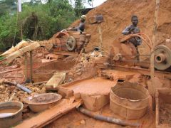 Über Kuntanase, der Goldstadt Obuasi und Dunkwa, vorbei an Ölmühlen für Palmöl und Goldschürfern, welche die Abraumhalden nochmals durcharbeien, nach Tarkwa und Dixcove ans Meer.